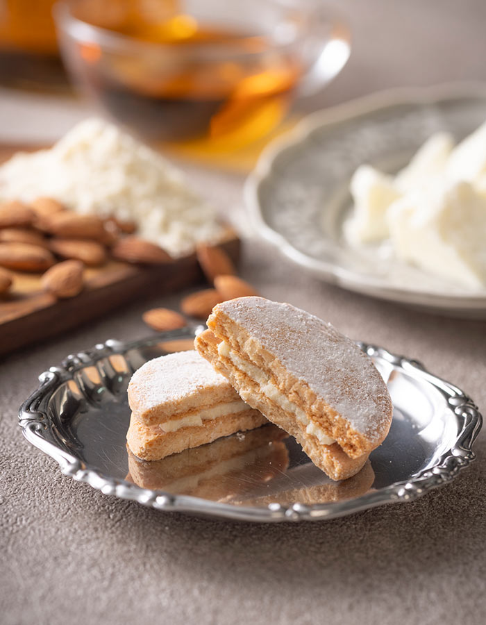 香り豊かなフランス産小麦と香ばしいアーモンドパウダーを使用し、ホロホロとした食感のガレットを焼き上げました。