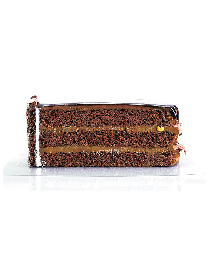 グラサージュショコラを纏った艶やかなショコラケーキ。ソフトなチョコスポンジとチョコ生クリームで仕立て、チョコのオーナメントを添えました。