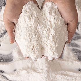 お菓子の基本の小麦はフランス産。ここに香り高いアーモンドパウダーをミックスしました。
